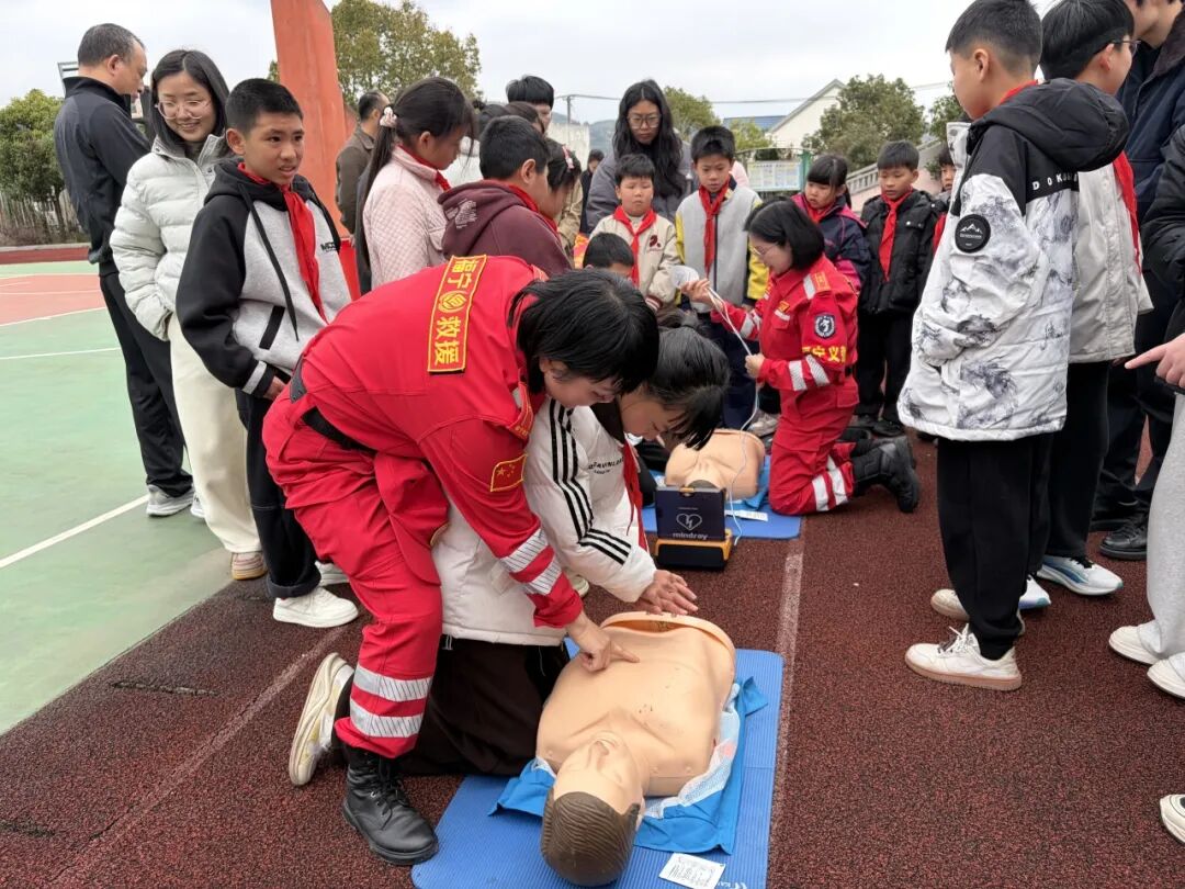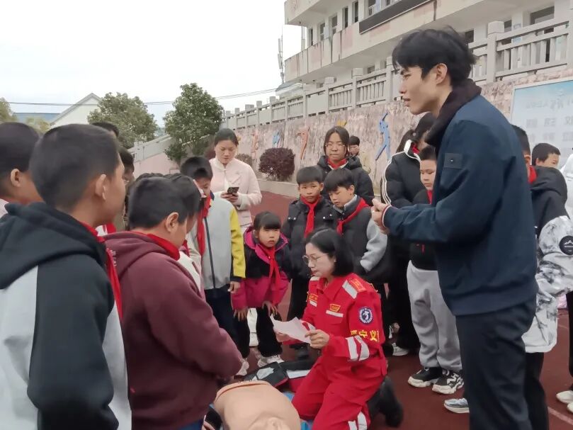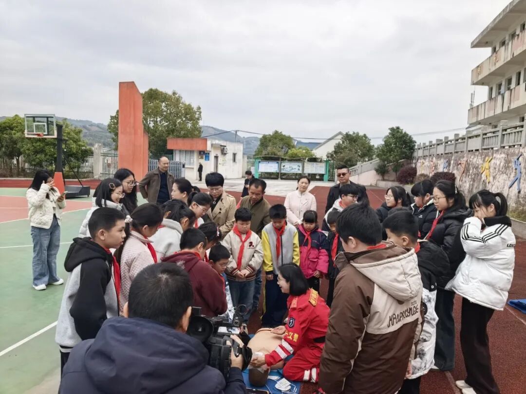活动伊始,商会代表和省水投驻溪边村第一书记王辰浩一行来到溪边小学,首先与学生们一起,开展急救知识学习。救援队队员结合青少年日常安全场景,用通俗易懂的语言,详细讲解了心肺复苏、海姆立克急救法等常用急救知识,通过现场示范、模拟操作的方式,手把手教孩子们掌握急救技巧,让孩子们在实践中学会自我保护、救助他人,进一步增强了安全防范意识和应急处置能力,为孩子们的健康成长筑牢安全防线。