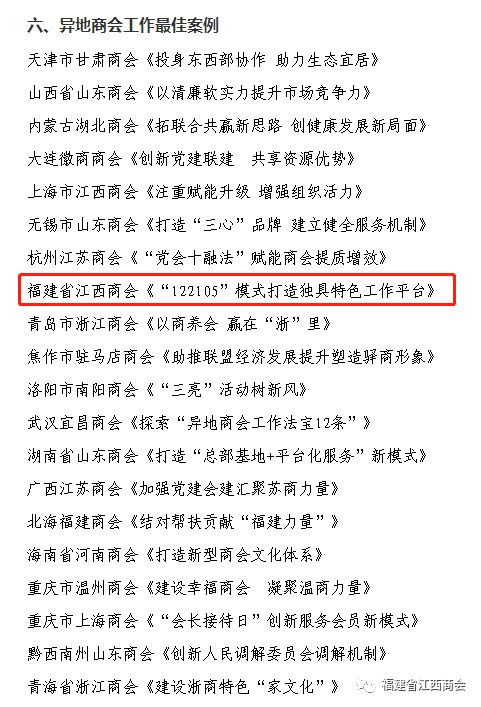 我会打造的《“122105”模式打造独具特色工作平台》是2022年度“创新中国”20个异地商会工作最佳案例之一。“122105”平台在商会日常运营中发挥着重要作用,加强了会员企业之间的沟通合作,也是商会发展过程中的主要创新点之一,能够更好地为会员企业提供精准服务。在未来的工作中,商会将继续保质保量地完成工作,不断创新工作形式,充分发挥“5A级商会”的榜样示范作用。以“122105”工作平台为依托,理论联系实际,增强会员之间的交流互动,助推商会加快创新发展。
