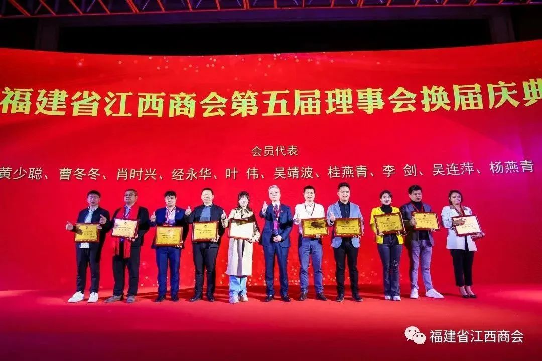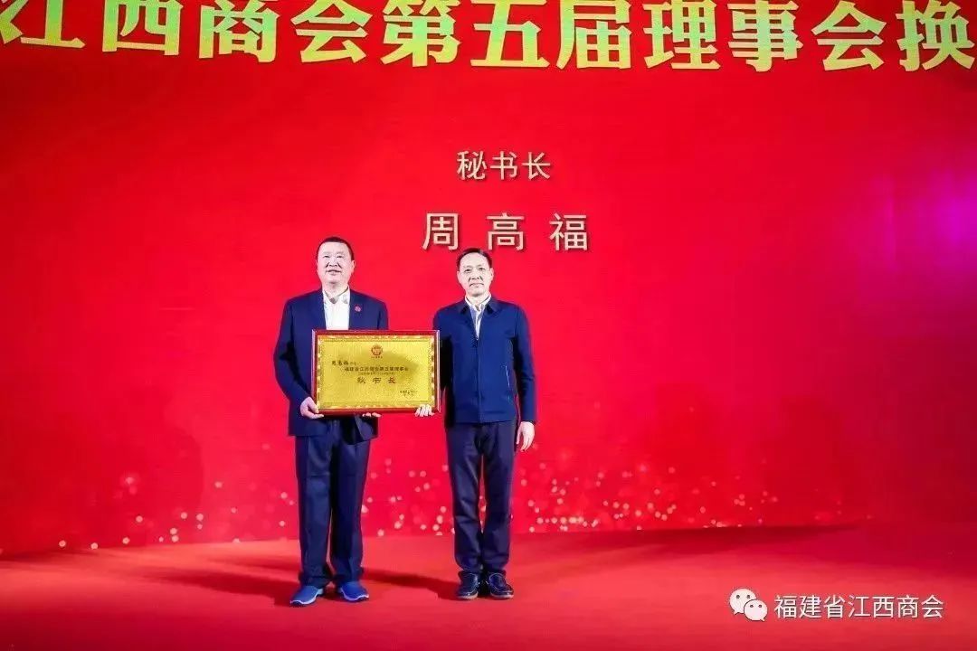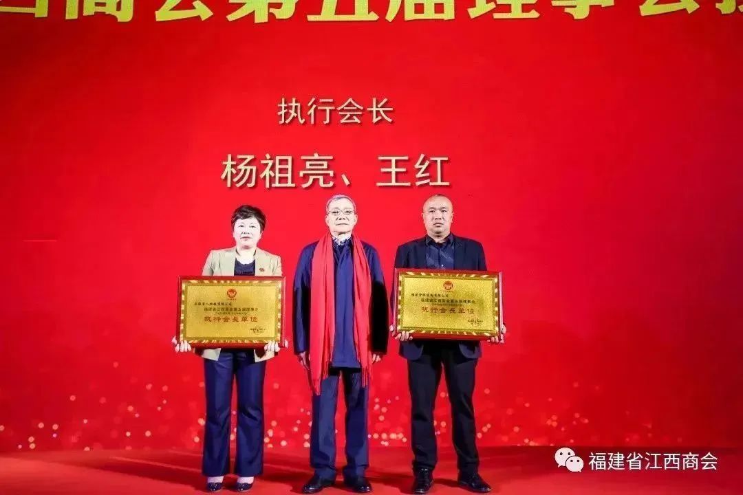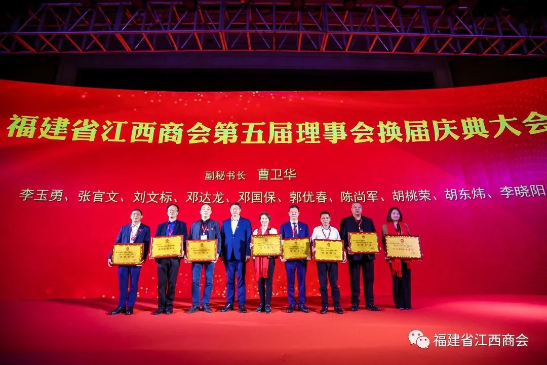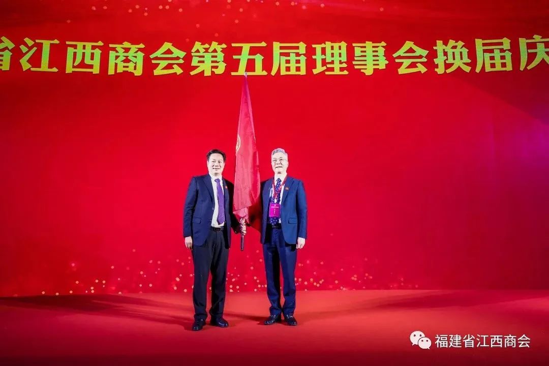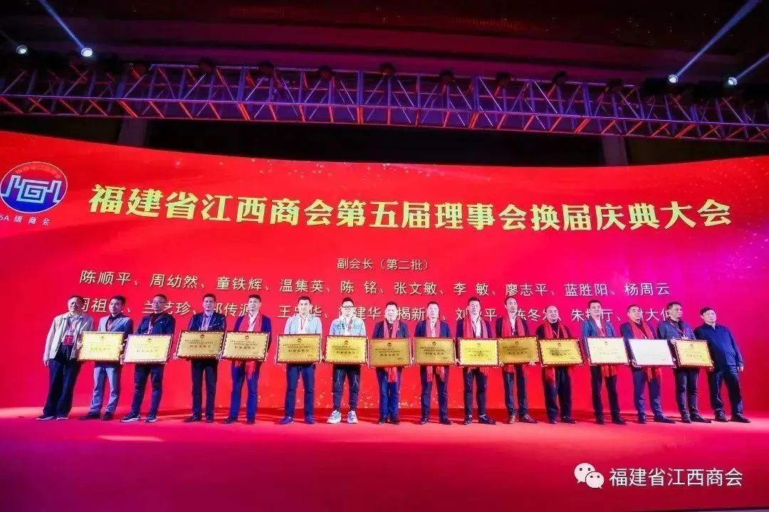 福建省工商联副主席叶善青、江西省商务厅副厅长陈长生为常务副会长授牌。