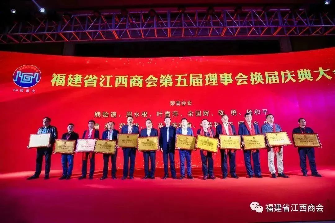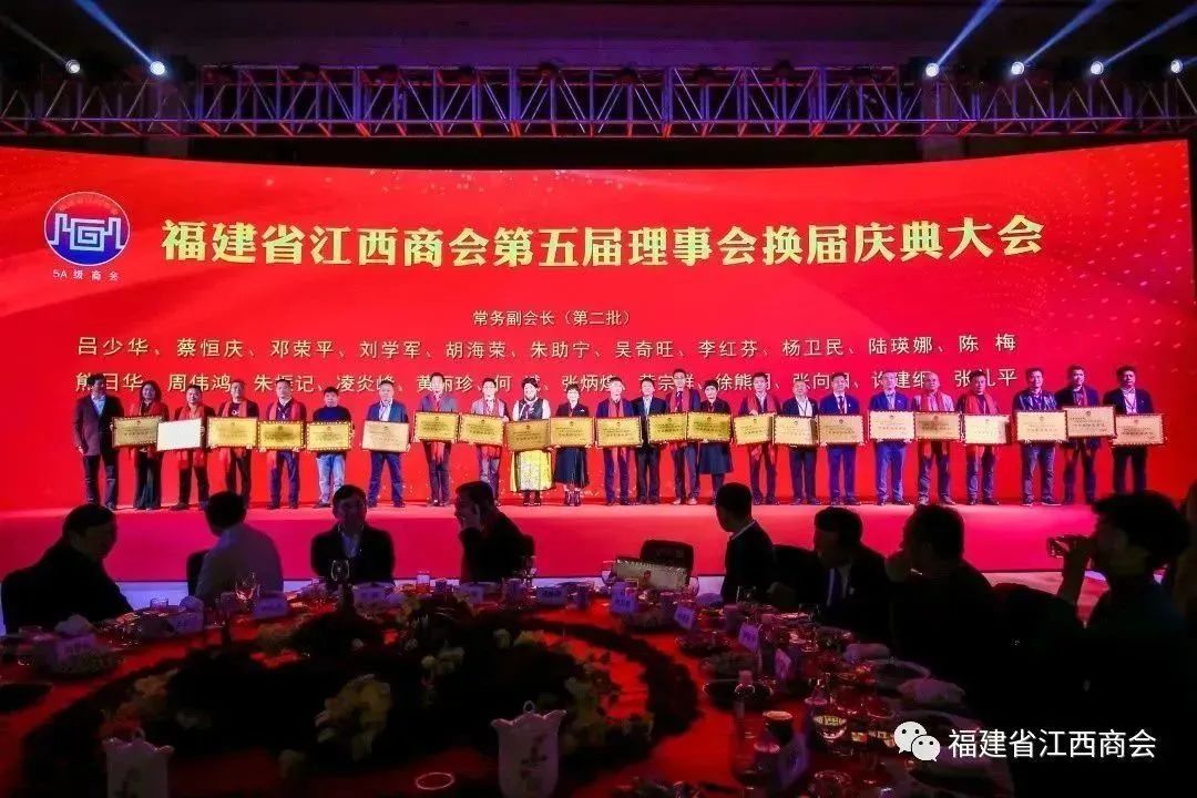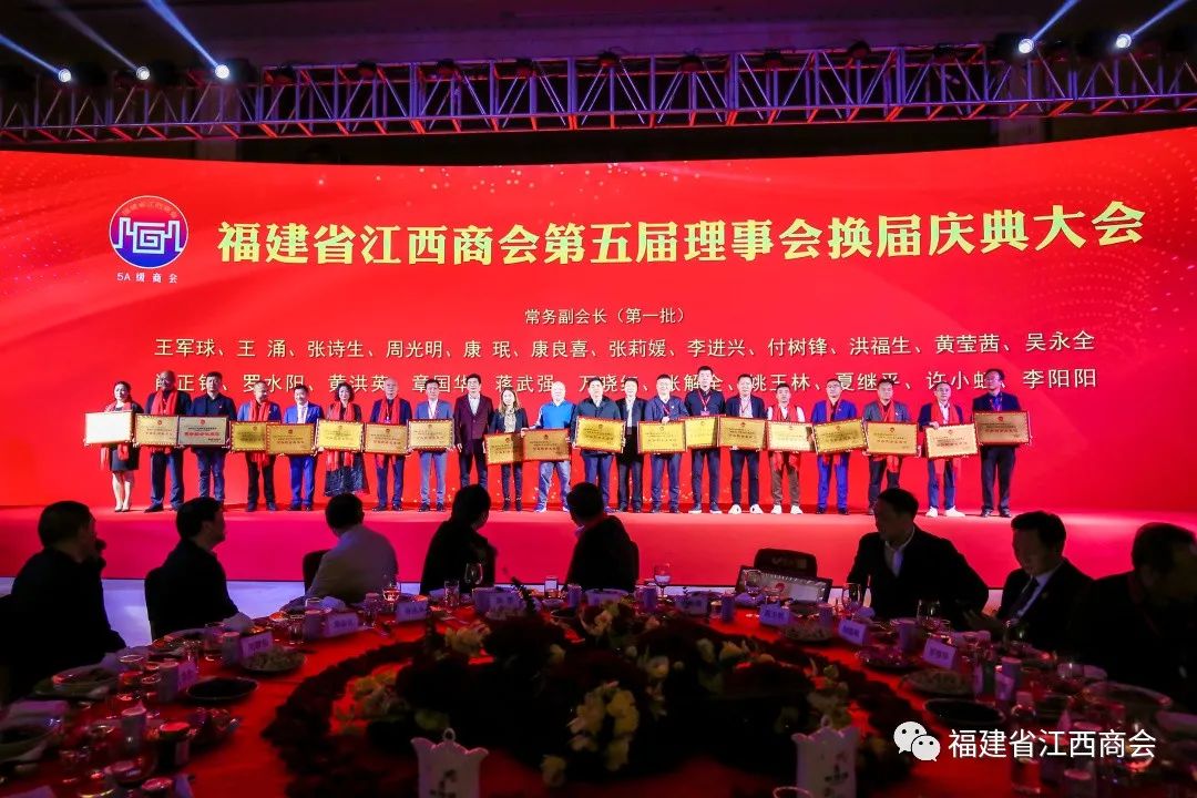 3月26日,以“启航新征程 赣出新风采”为主题的福建省江西商会第五届理事会换届庆典大会在福州顺利举行。福建省政协副主席、省工商联主席王光远,原全国政协常委、江西省政协副主席陈清华,福建省军区原副司令员朱光泉将军,江西省妇女联合会原党组书记、主任段火梅,原中共福州市委常委、福州军分区政委王爱平,江西省工商联一级巡视员刘星平,福建省工商联副主席叶善青,江西省商务厅副厅长陈长生,原江西省人民政府驻福建办事处主任黄明霞,福建省经协集团原党组书记、董事长方益全,福建省安全厅原巡视员罗春华,福建省企业与企业家联合会执行会长许先丛,福建省工商联会员部部长、二级巡视员郑玉明,赣商总会党委书记、执行会长邓必云,以及闽赣两省相关部门领导,赣商总会,全国各省级江西商会、江西各地市赣商总会、福建省异地商协会、福建省江西籍各级商会会长及秘书长,商会顾问、全体会员,新闻媒体等750余人参加盛会。