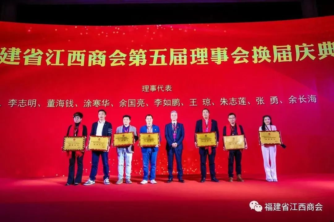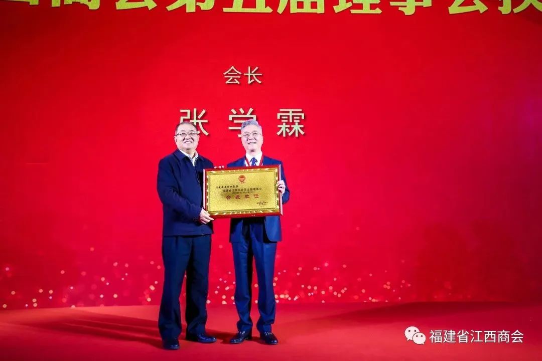 福建省江西商会会长张学霖为理事、会员代表授牌。