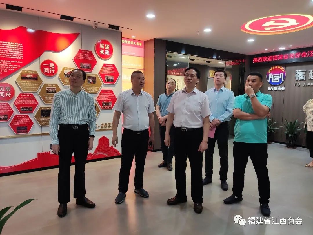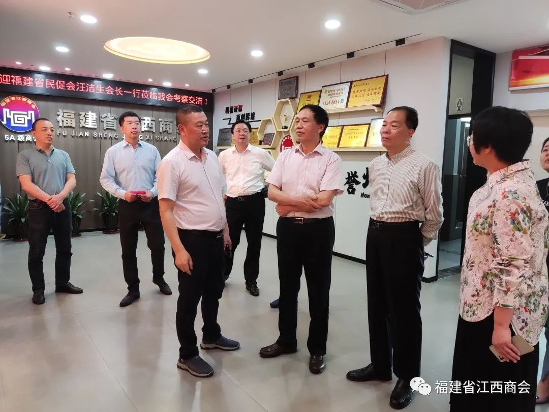 5月6日上午,福建省民间组织发展促进会会长汪洁生、监事长吴正贵、秘书处负责人陈敏,福建省广东商会秘书长骆树忠、福建省吉林商会秘书长薄秋玉一行,莅临我会参观考察。会长张学霖热情接待了汪会长一行,党支部书记兼秘书长周高福,轮值会长康珉、张文敏,副秘书长曹卫华参加接待。 张会长首先对汪会长一行莅临我会参观考察、指导工作表示热烈的欢迎,由衷的感谢各位领导和同仁对商会的关心。向大家介绍了商会发展历程及近期工作开展情况。福建省江西商会成立于2006年,是福建省成立的第一家省级异地商会。2013年、2021年连续两届被福建省民政厅评为“5A级商会”。先后多次获评“先进党支部”“四好商会”“先进社会组织”“先进基层党组织”等荣誉称号。本届开展的轮值会长制度,经过几个月的实践,成效显著。在轮值过程中,会长们从幕后走向台前,积极组织开展工作,不仅能为商会发展建设出谋划策,还能带动商会活动的开展,助力商会发展的越来越好,得到了广大会员的高度赞同和认可。 汪会长指出,本次来商会的主要目的是参观、调研,商会搬迁新址,带大家过来认个门、走动一下。听完张会长的介绍,加上平时听到、看到、感悟到的,他认为福建省江西商会近几年发展的越来越好了。他表示,福建省江西商会发展得好,离不开以下几个因素:一是讲政治,商会党建工作做得好,走在了福建省省级异地商会的前头;二是讲团结,商会企业家很多,但是相互之间非常团结、互帮互助、共同进步;三是抓服务,商会在服务企业、服务会员方面尽心尽力,为会员提供优质精准的服务;四是求效果,经过全体会员的不懈努力,连续两次获评为“5A级商会”,是非常值得骄傲的。最后,他希望福建省江西商会越办越好、越办越大,成绩更上一层楼。 座谈交流前,党支部书记兼秘书长周高福带领客人参观了商会会馆。