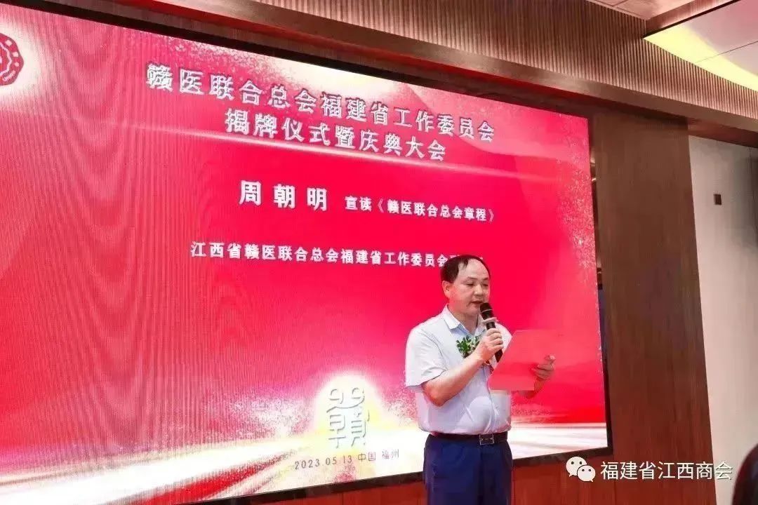 赣医联合总会福建省工作委员会副主任周朝明宣读《赣医联合总会章程》主要内容。