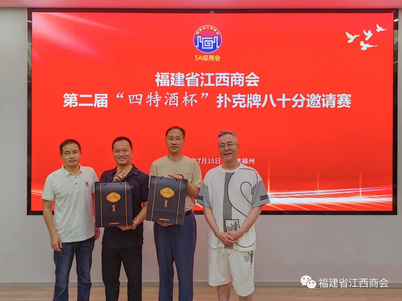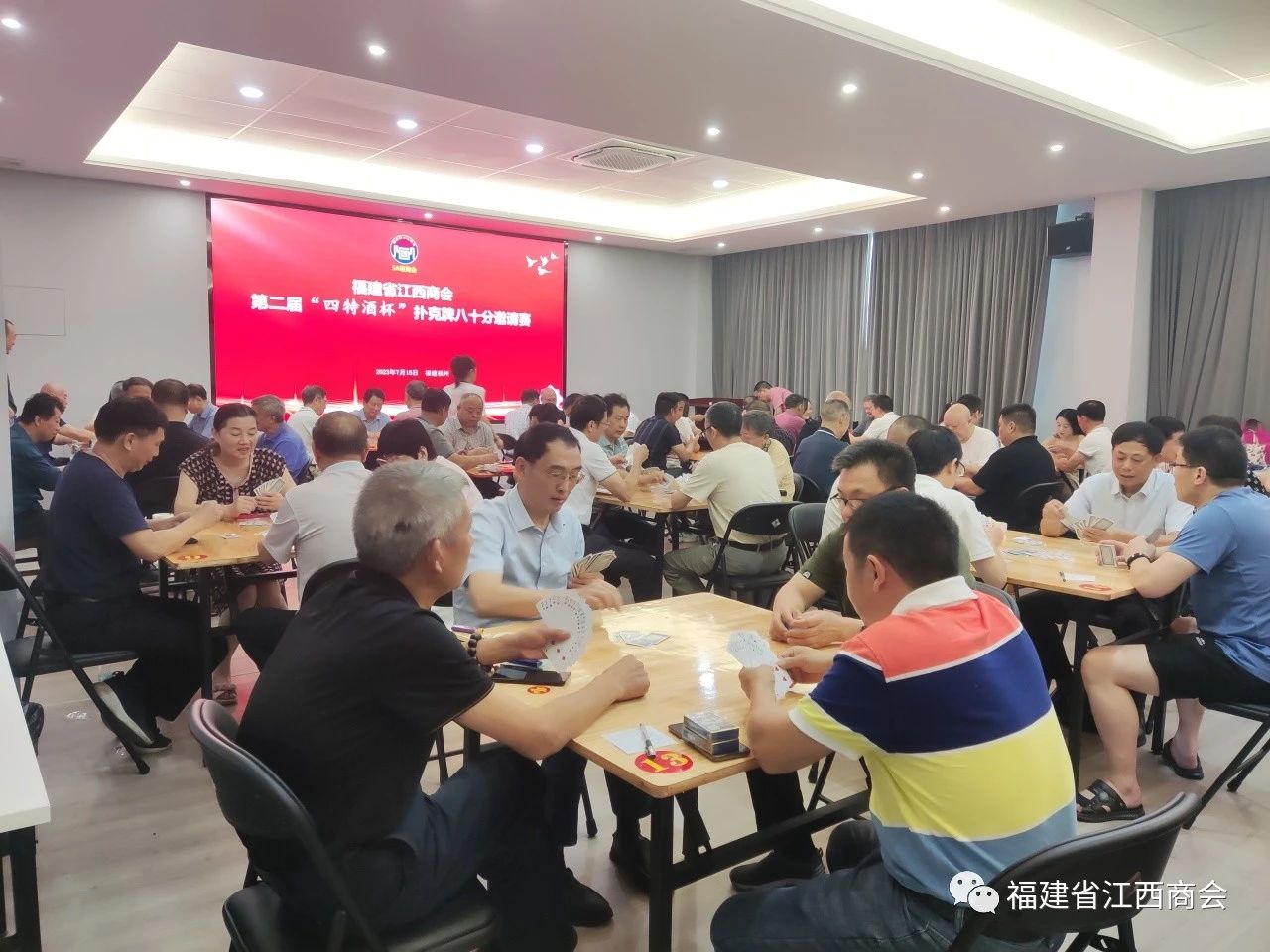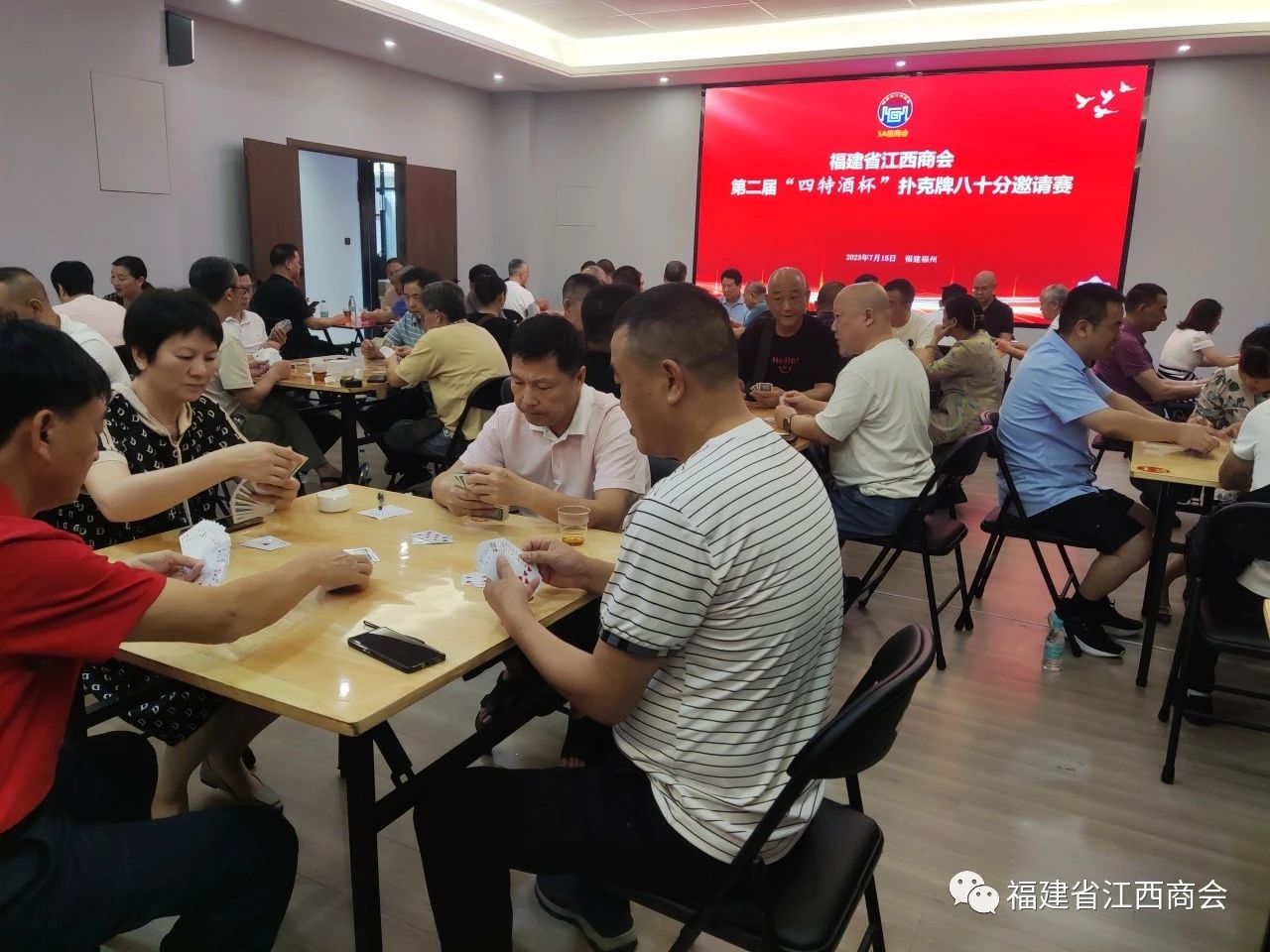 为丰富商会顾问、会员业余生活,加强交流,增进友谊。7月15日,由福建省江西商会主办、福建省江西商会体育休闲委员会承办的第二届“四特酒杯”扑克牌八十分邀请赛在商会会馆举办。商会顾问、会长、理事、会员等共70余人参加本次活动。