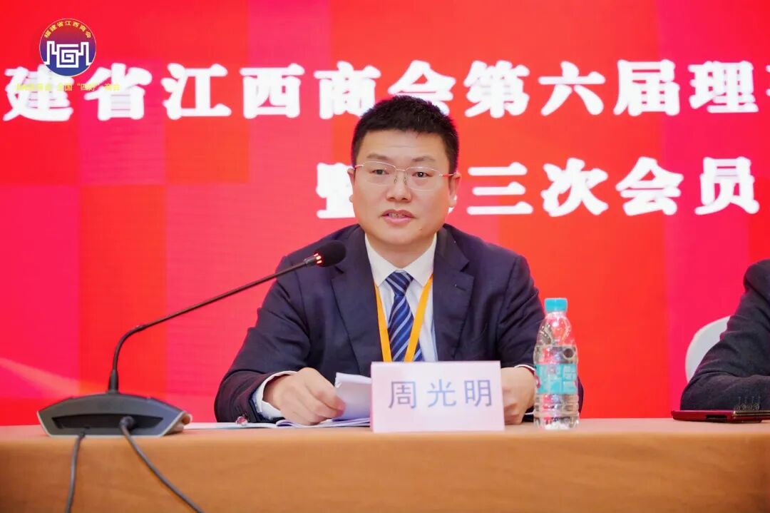 执行会长周光明作《2025 年度工作报告》,全面回顾全年工作成效。报告围绕政治建会、团结立会、服务兴会、改革强会、社会责任五大方向,以矩阵化管理为支撑,靠轮值制度与专委会创新精准赋能会员,用公益义诊、返乡投资等实践彰显责任担当。各项工作多点开花、成效斐然,既擦亮了商会品牌底色,更凝聚起赣商同心奋进的强劲合力。