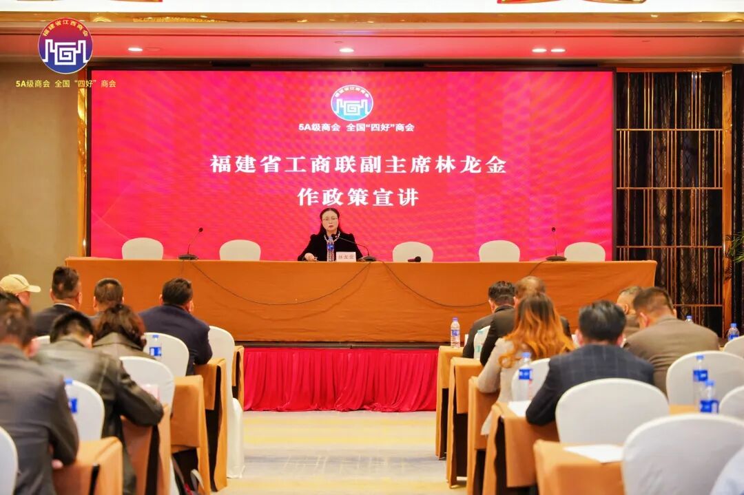 会议最后,福建省工商联副主席林龙金在会员大会做政策宣讲,重点围绕《福建省民营经济促进条例》展开深入解读。她指出,《条例》的出台是福建护航民营经济高质量发展的重要举措,为民营企业纾困解难、发展壮大提供了坚实法治保障。结合当前经济形势,林主席分析了民营经济面临的发展机遇与挑战,强调在复杂环境下,民营企业更要强化法治自觉,坚守合规经营底线,将条例精神融入生产经营各环节,善于运用政策红利破解发展难题。同时鼓励商会持续发挥桥梁作用,带领广大在闽赣商把握机遇、坚定信心,在合规发展中实现更大突破。