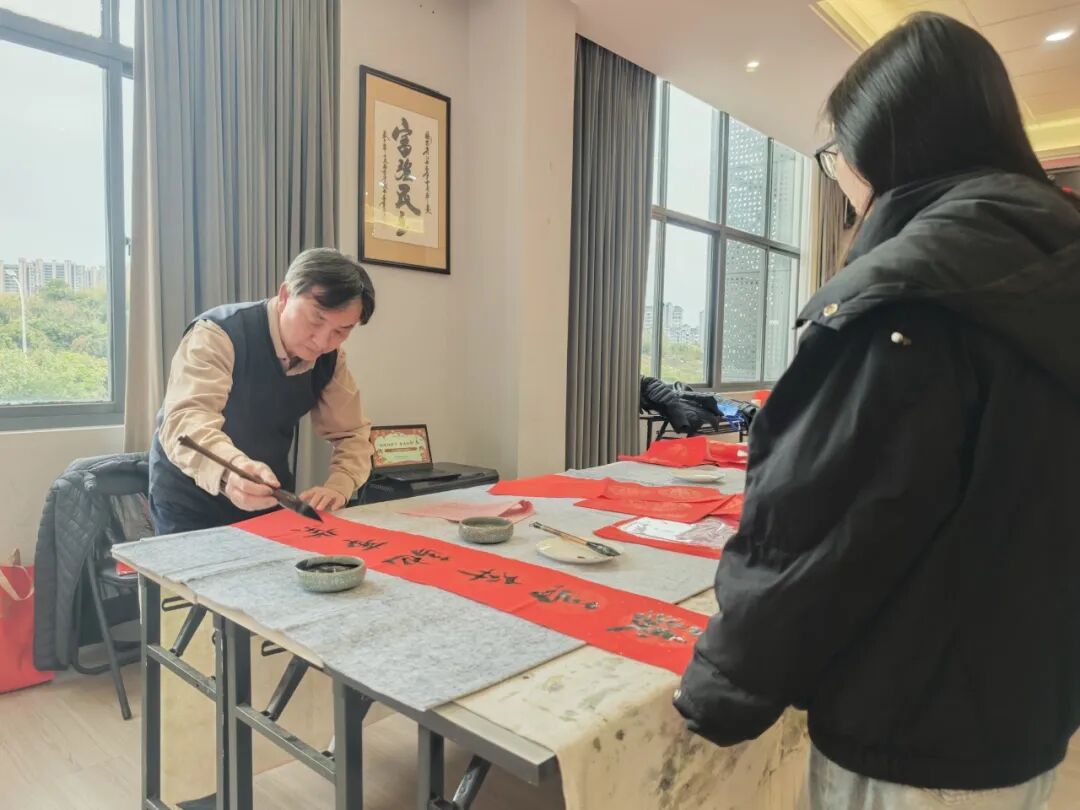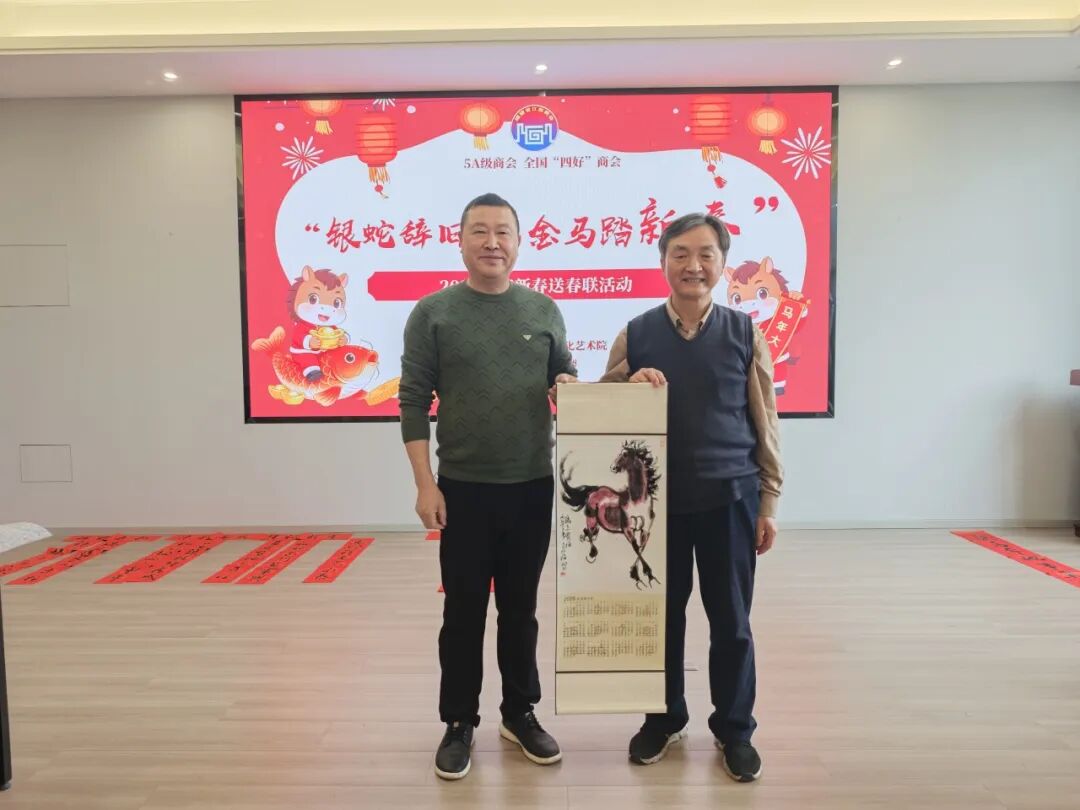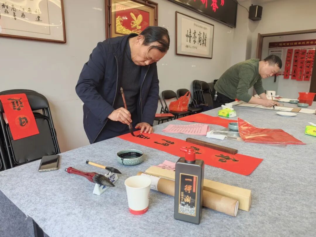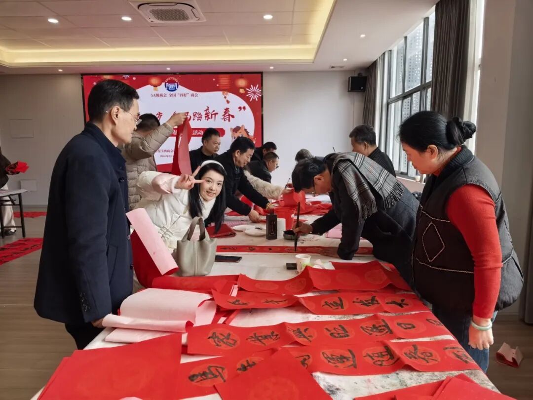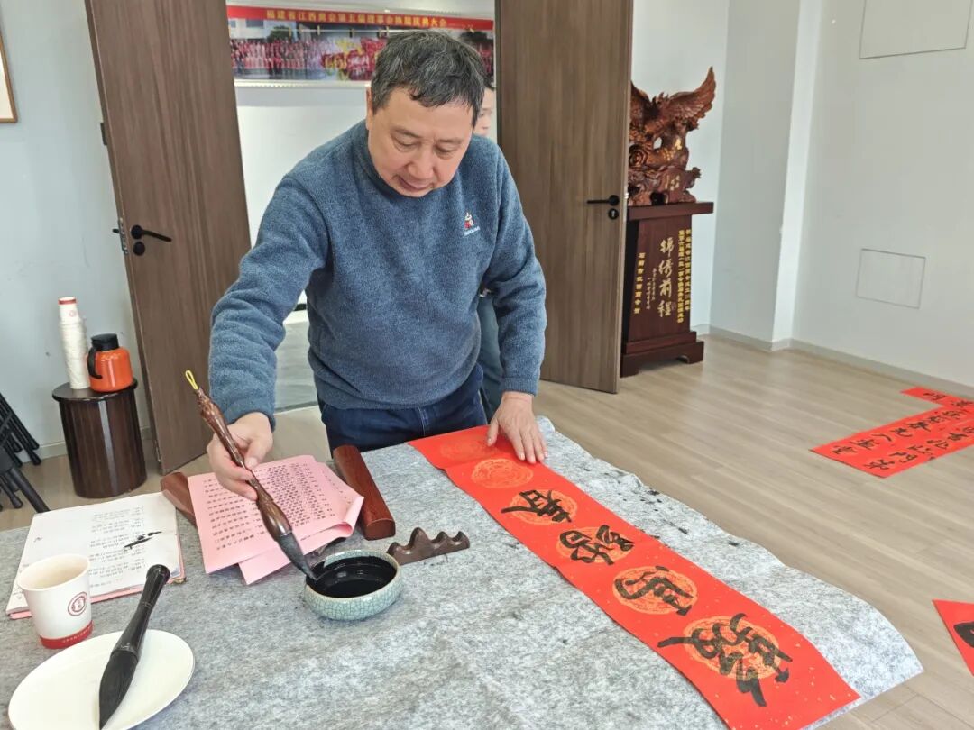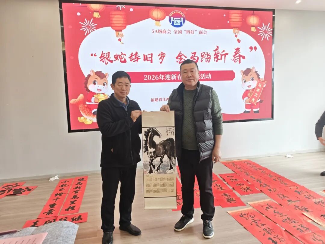 为感谢商会会员对商会工作一如既往的关心和支持,2026年2月1日,福建省江西商会赣商文化艺术院举办的“银蛇辞旧岁,金马踏新春”福建省江西商会2026年迎新春送春联活动,在商会会馆多功能厅顺利举行。福建省江西商会赣商文化艺术院顾问温佳禄、邹平、陈文汉、聂志刚、胡继荣、曾继武、苏义春、应怀军莅临现场挥毫赠福、共贺新春。会长张学霖、执行会长兼赣商文化艺术院院长周光明、监事长王涌、文化艺术院顾问兼党支部书记周高福、秘书长曹卫华、以及常务副会长、副会长、理事、会员等60余人参加了本次活动。 活动现场墨香四溢、暖意融融,处处洋溢着浓厚的新春氛围。鲜红的春联纸整齐铺陈,笔墨砚台依次排开,书画艺术家们凝神挥毫、笔走龙蛇,笔墨流转间,一幅幅寓意吉祥的春联翩然成型、一匹匹俊逸灵动的骏马也跃然纸上。红彤彤的春联将现场映照得喜气洋洋,指尖触到的是未干的墨痕,耳畔闻的是笑语欢声,让大家感受到了传统文化的魅力和满满的年味,也感受到了商会这个“文化大家庭”的温暖与关怀。 滑动查看更多 本次“银蛇辞旧岁,金马踏新春”福建省江西商会2026年迎新春送春联活动共送出春联、书画作品400余幅,这些饱含深情的笔墨作品,不仅是对新春佳节的美好期许,更是商会与会员之间情谊的真挚见证。未来,福建省江西商会将继续以文化为纽带,传承中华优秀传统文化,凝聚赣商力量,携手广大会员在新的一年里同心致远,共赴金马新春的美好征程!