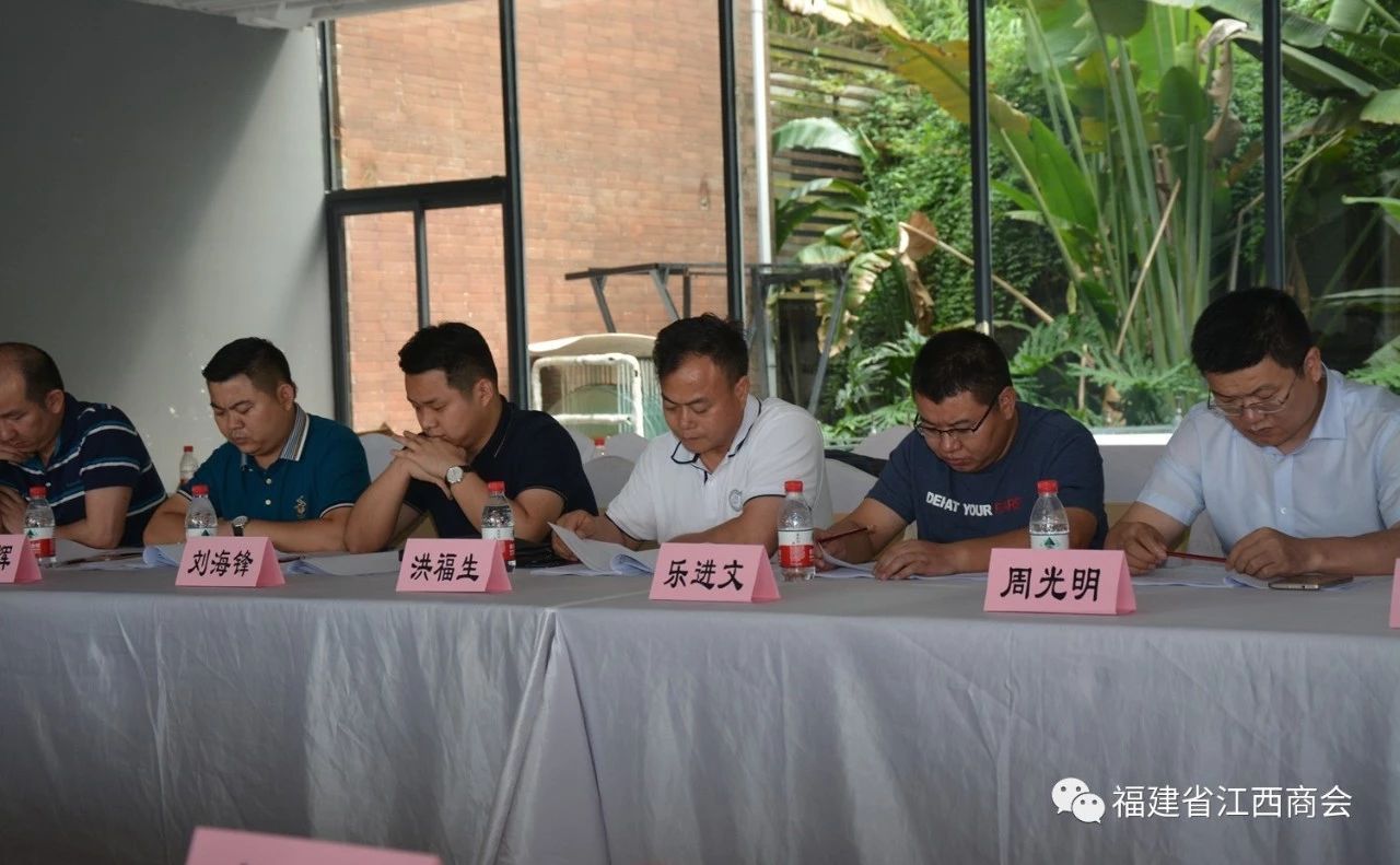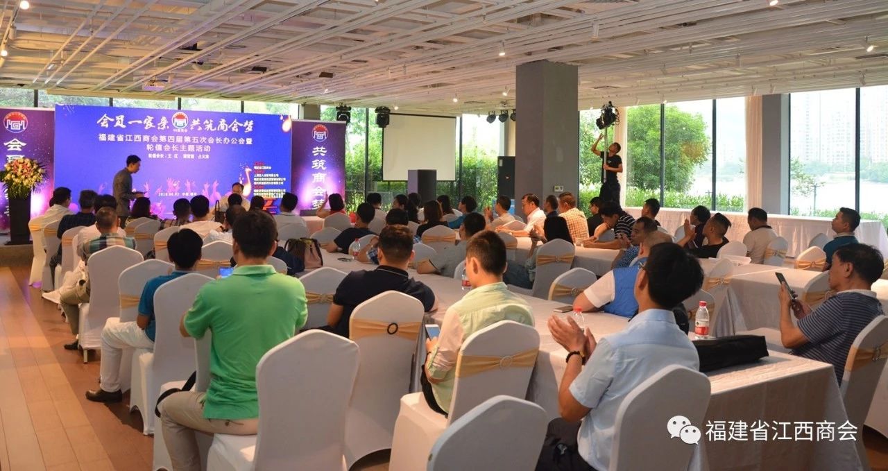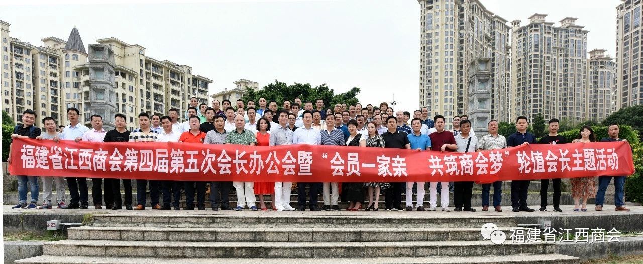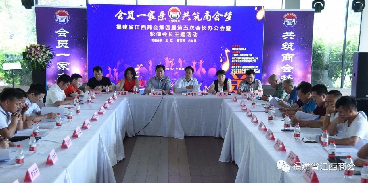 2018年6月2日,福建省江西商会第四届理事会第五次会长办公会在福州市“江滨一号”召开。会长胡连荣,执行会长张学霖,监事长应卫峰(代表),常务副会长王红、杨祖亮、王涌、陈晓康、李之仁(代表)、张诗生、王军球、周光明、康良喜、李进兴、计红日、范升、乐进文、付树锋、宋春雷、胡总保、洪福生、黄莹茜,副会长廖彩俊(代表)、刘海峰、吴永全、陈光、肖正钟(代表)、占义泽、杨敏(代表)、朱云庆、李长辉、黄宗群、杜志虎、黄洪英、李红光, 秘书长周高福出席了会议。会议由执行会长张学霖主持。