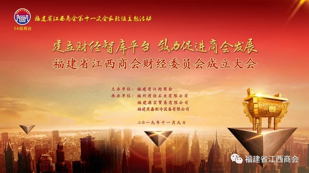 2019年11月9日18:00,福建省江西商会财经委员会成立大会,在福州梅峰荣誉酒店隆重举行。福建省江西商会会长办公会成员、江西在闽企业家,以及在闽赣籍财政、税务、银行、保险、基金等财经行业的老乡130人欢聚一堂。共同见证这一盛会。