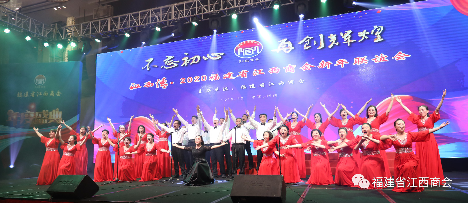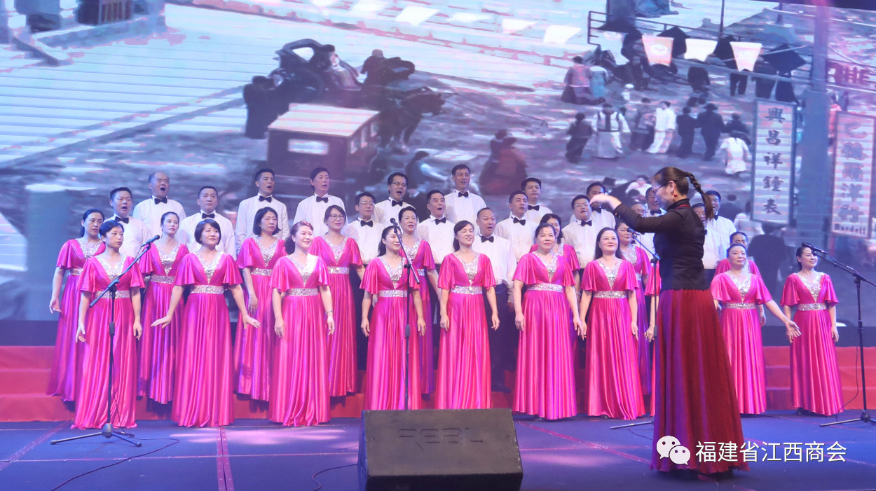 特别是由福建省江西商会合唱团带来的合唱节目《龙的传人》《赣商之歌》。该曲目是合唱团在参加2019年福建省工商联举办所属商会庆祝建国70周年“歌颂新时代,永远跟党走”歌咏比赛,荣获金奖第一名的曲目。
