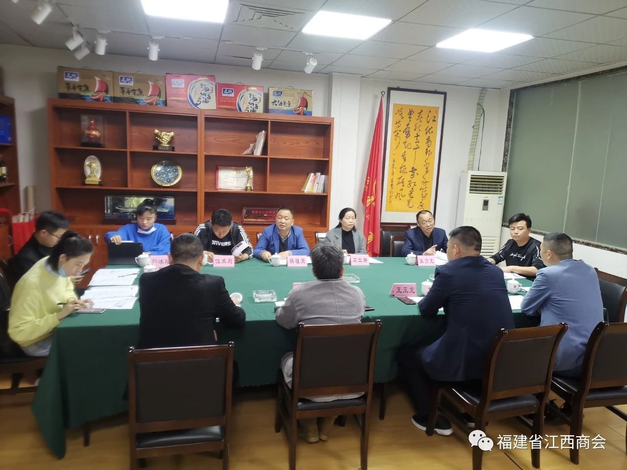 2020年4月23日上午,江西共青城市委常委,组织部长杨祖荣一行8人,来我会考察座谈,参加座谈会人员有:共青城市委常委、组织部部长杨祖荣、市政府党组成员石立耕、市苏家垱乡党委书记伍术刚、市民政局局长张方元、市财政局总部经济办主任孙冰瑶、市委组织部办公室主任张业成、市苏家垱乡招商办主任夏依娜、市民政局社会组织科主任王亮,福建省江西商会监事长、福建承创堂中药有限公司董事长应卫峰、福建省江西九江商会会长、福建裕轩投资有限公司董事长王玉龙、福建省江西商会秘书长周高福、会员、福建国亚汽车服务有限公司董事长徐朝晖、秘书处秘书周卫华、吴贵兰。首先,杨祖荣部长和周高福秘书长分别介绍了参加座谈会共青城和商会的代表。