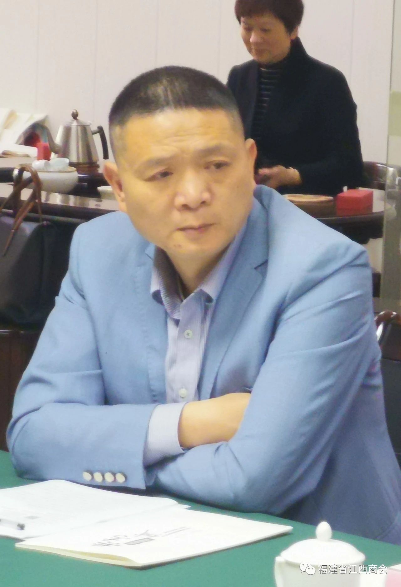 福建省江西商会监事长应卫峰代表商会,对杨部长一行来我会考察座谈表示热列欢迎,同时,介绍商会基本情况,对共青城政策优势,新的互联网思路,新的招商业态等给予了充分赞誉,共青城招商团的到来,对我们会员企业发展带来了新的、宝贵的资源信息。应卫峰监事长要求参加座谈会代表,先建立一个微信群,发挥电子网络优势,把家乡的新政策、新项目,传达到会员企业和兄弟商会的企业,为家乡经济发展做好宣传员,传播员。福建省江西九江商会会长王玉龙、会员徐朝晖分别发了言。